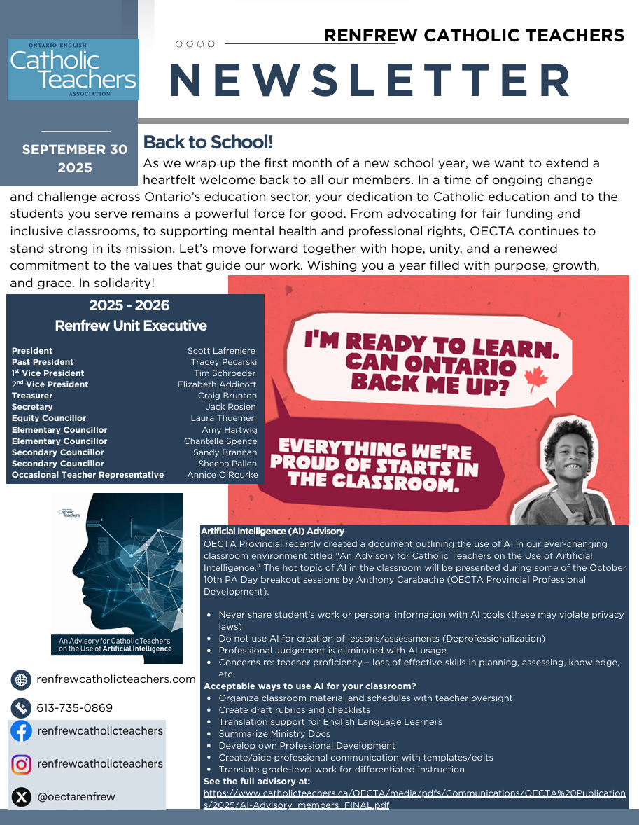 Check back regularly for the latest edition of the Renfrew Catholic Teachers Newsletter